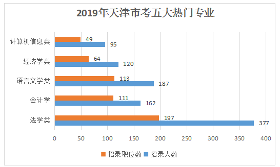 (1)熱門(mén)專(zhuān)業(yè)好報(bào)考,但競(jìng)爭(zhēng)力大。據(jù)2019年天津公務(wù)員考試報(bào)考數(shù)據(jù)顯示,報(bào)考人數(shù)最多十大部門(mén)的崗位,幾乎都是招考一些熱門(mén)專(zhuān)業(yè)或者是不限專(zhuān)業(yè)的職位;