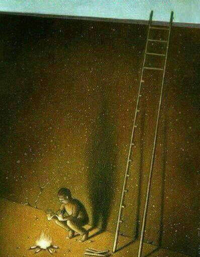 第二題,漫畫題:一個(gè)人在井里烤火,烤火的木柴是井里的梯子,起標(biāo)題,并談看法。